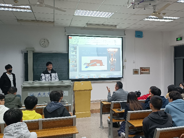 本次大赛主题为“自然·和谐”,比赛内容为设计与制作——模仿自然界动物的运动形态、功能特点的机械产品(简称仿生机械),用于修复自然生态的机械装置,包括防风固沙、植被修复和净化海洋污染物的机械装置(简称生态修复机械)。15个团队约30个项目进行角逐,评委老师对各组参赛作品进行了综合评议。