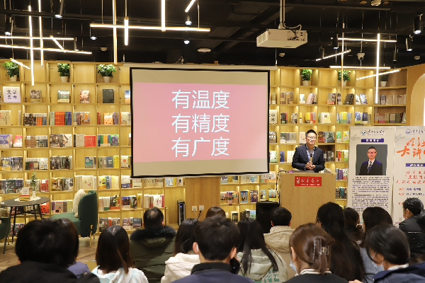 讲座伊始,肖巍介绍了参与“双创项目”的三个渠道,并鼓励同学们要有敢闯、敢创的勇气和决心。随后,他提出了参加大赛的四个关键词:兴趣、选题、团队和创作,鼓励同学们参与“双创项目”一定要基于兴趣,兴趣是最好的老师;选题要有温度、精度和广度;要广泛阅读,积累相关实践经验。他还分享了“文化自信视域下非遗文创品牌实践”“舒艺养老——老龄人高质量养老模式研究”“乡里乡音方言品牌文创设计与新媒体互动研究”“展库平台的搭建”等案例,指导同学们以“双创项目”和“互联网+”“挑战杯”等赛事为契机,做好项目培育孵化,实现成果转换。