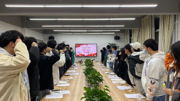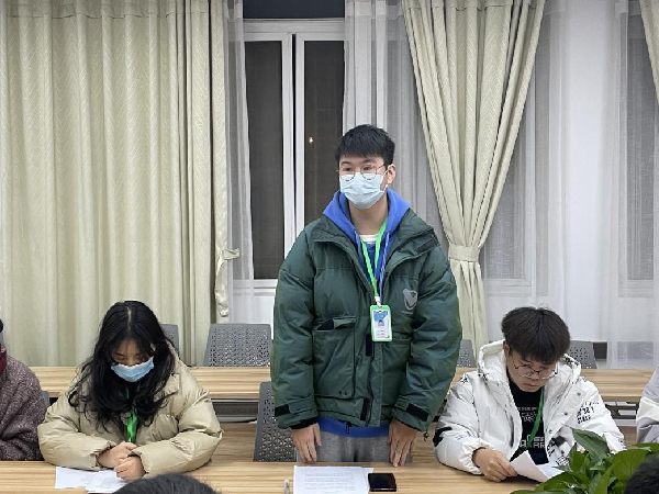 会上,学生会主席吴亚桐对2021年度学生会工作进行了总结汇报。主席团及部长对各部门工作进行总结。全体学生干部针对个人工作进行了深度剖析,将前期工作问题“摆上桌面”,通过批评与自我批评,查摆问题、表态决心、明确方向、改进工作。最后,全体与会人员重温了入团誓词。