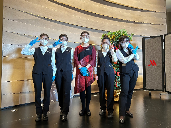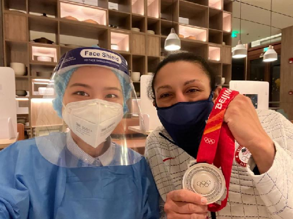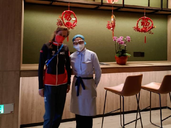 疫情尚未结束,冬奥会为防疫抗疫做了充分准备。在正式上岗前,5位志愿者接受了酒店专业管理培训,并系统学习了疫情防控相关知识,包括防护服的穿着方式、日常的清洁消杀、接触安全等。工作中因为长时间穿戴防护装备,志愿者们脸上出现了难消的勒痕。