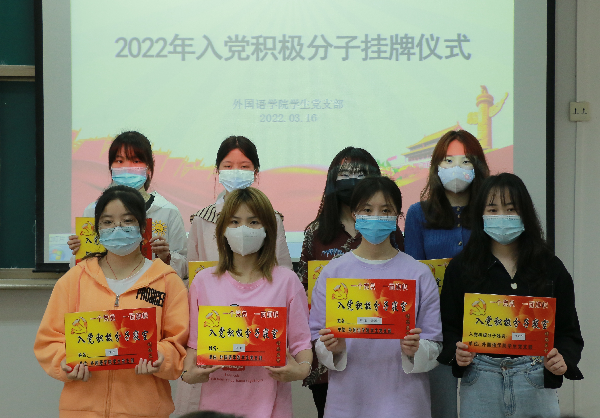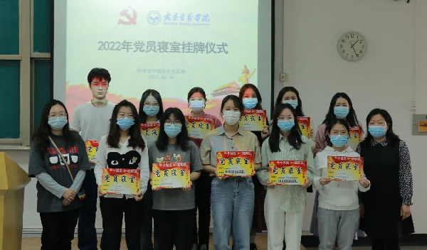外国语学院举办学生党员和入党积极分子寝室挂牌活动 2022-03-23 13:55:12 <<< 上一张 下一张 >>> 为增强学生党员身份意识,发挥学生党员和入党积极分子在日常学习生活中的模范带头作用,3月16日,外国语学院在成学楼202室举办了党员寝室、入党积极分子寝室挂牌活动。 活动中,党总支书记杨芳为党员寝室、入党积极分子寝室挂牌,并希望学生党员提高责任意识,充分发挥榜样作用,努力营造和谐融洽的寝室氛围,激励更多同学向优秀看齐。 记者 陈奕萍 编辑 张璐
