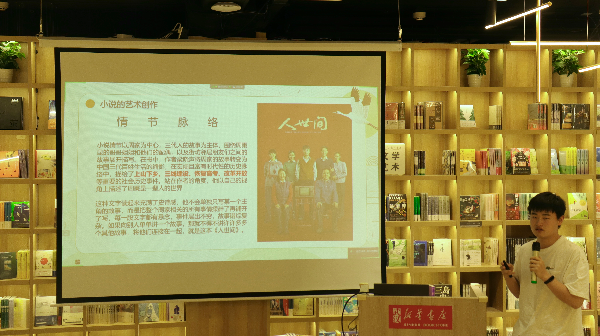 此次阅读活动围绕“文学具有引人向善的力量”展开,分沙龙导读、阅读小组分享和师生话题互动三个环节。活动伊始,董迩春老师简要介绍了活动形式和主题书目《人世间》。随后,六个文学兴趣小组的队长依次进行了发言,阐述了自己小组的阅读心得。网络与新媒体2019级田乐同学以该书为切入点,展开了关于“政治”“人情”“生活”和“选择”的探讨;金融2019级庹明柱同学围绕该书中平淡日子里的凡人烟火,阐述了关于家庭内阶级的思考,认为书中描写的不仅是周家的故事,更囊括了上山下乡、改革开放等具有历史性的时代大事,由此发出“从小说看到一个时代,再从文字中看到我们自己”的感悟。