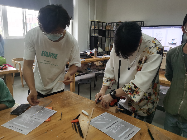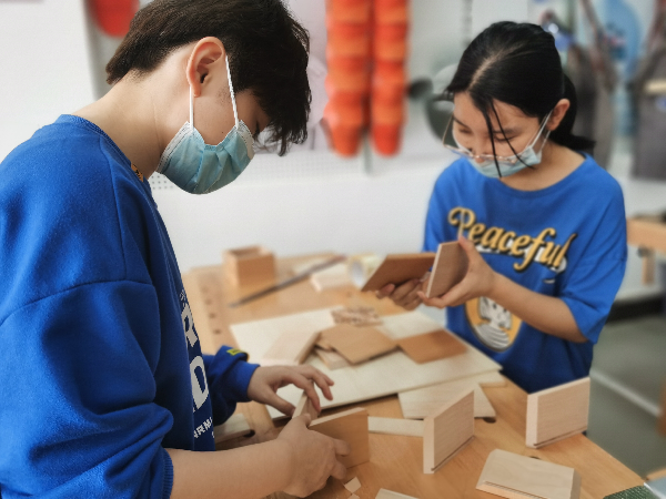 产品2002班熊千硕同学表示:“两天的培训,我们在插接、拼接等榫卯工艺的制作中,感受到了中华民族几千年来的智慧和创造力,以及人与自然之间联系的紧密,这就是木工的魅力。”