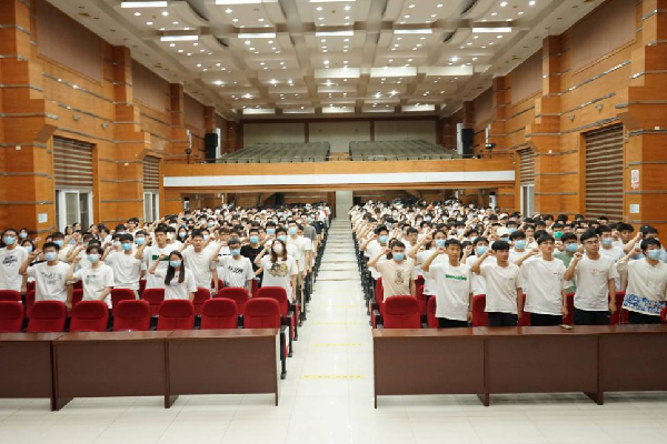 土木1901班在校学生陈一飞以在校生的角度,诠释了如何在实践中践行诚信品质,并带领现场非毕业班同学进行诚信宣誓。