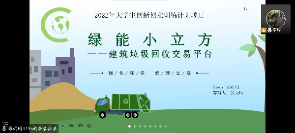 答辩中,“慧养老·创业实践项目”获得评委高度评价。该项目以互助合居养老理念为核心,是一个服务于老年群体的互助式合居养老计划项目,项目负责人重点对初期、中期和后期的项目目标进行了介绍。“绿能小立方——建筑垃圾回收交易平台”项目同样受到肯定。该项目依托微信小程序,构建施工单位与建筑垃圾回收工厂进行连接平台,以此来加快建筑垃圾资源化利用,帮助政府督促施工单位合法处理建筑垃圾,目前微信小程序“绿能小立方”框架已搭建完毕,UI界面已初步完成。