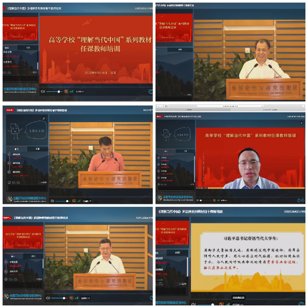 根据《教育部高等教育司关于开展〈理解当代中国〉多语种系列教材任课教师培训的通知》精神和校人事处部署,8月5日-6日,外国语学院组织英语系22名专业教师参加了由北京外国语大学﹑外语教育与研究出版社﹑全国高校教师网络培训中心组织的《理解当代中国》多语种系列教材任课教师线上培训。