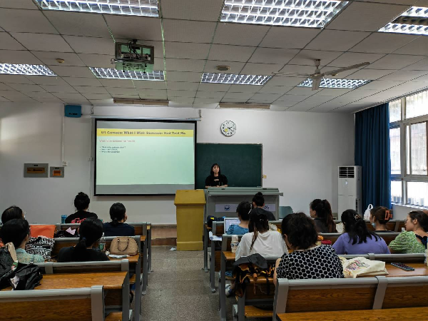 为加强教师教学研讨,提高教师教学水平,8月13日下午,外国语学院大学英语第二教研室开展了针对新进教师的新开课试讲活动,教研室全体老师参加。肖琳、方青青两位老师担任本次试讲活动评委,曾御江洪、杨锐两位新教师进行了试讲。