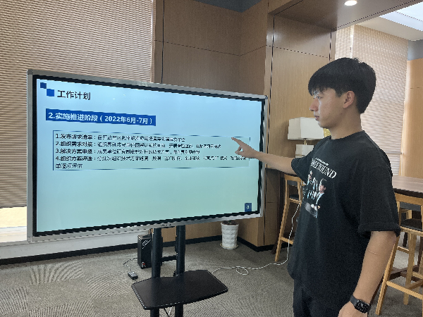 7月15日,年级负责人周红丽老师开展了就业推进工作第一行——走访计科zsb2103班范楚峻同学创业项目基地。