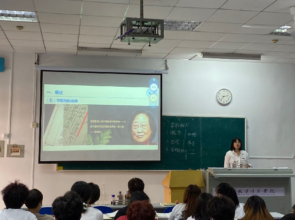张兴明老师的公开课为《生物工程分离》。在讲到萃取技术中萃取剂的选择标准时,张兴明老师巧妙引入诺贝尔生理学或医学奖获得者、共和国勋章获得者屠呦呦提取青蒿素的事例,通过“青蒿素是传统中医给世界的一份礼物”,引导学生了解中医药在治疗疾病方面的突出贡献,激发学生民族自豪感和文化自信。