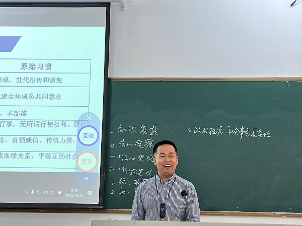 10月22日上午,刘洋老师的《法理学》公开课在嘉鱼校区B320教室开讲。课堂上,刘洋老师将专业知识与“课程思政”有机结合,将大量理论知识转化为通俗易懂的金句,有效引导学生记忆和理解。刘洋与学生热烈互动,将“课程思政”理念贯彻其中,通过抢答等形式,提高学生课堂参与度,引导学生探究法的起源、产生过程、一般规律和历史类型,帮助学生简化书本知识,形成思维导图。同时,他还利用大量案例引导学生进行探究,深思背后与之有关的社会与人的关系。