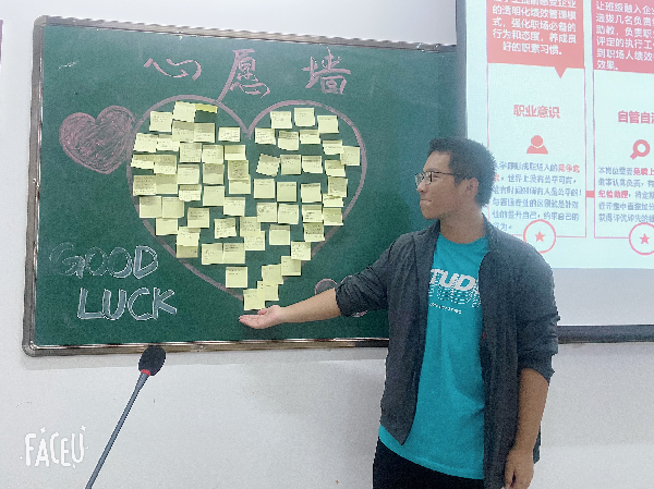 活动最后,郭维霞就同学们提出的学习方法、能力培养、就业前景等相关问题作了耐心解答。同学们纷纷在“我们的契约”心愿墙上用便利贴写下了自己的大学目标与规划。