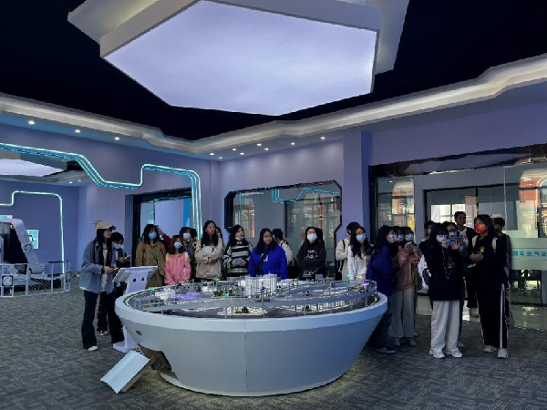 新生们在企业老师带领下,首先参观了腾讯云互联网基地展厅。在数字大屏前,企业老师围绕产业链特点,运用云计算、大数据及物联网等领域的领先技术,依托现场丰富的多媒体设备和VR技术,向新生们展示了腾讯生态、新技术应用能力及工业互联网能力。