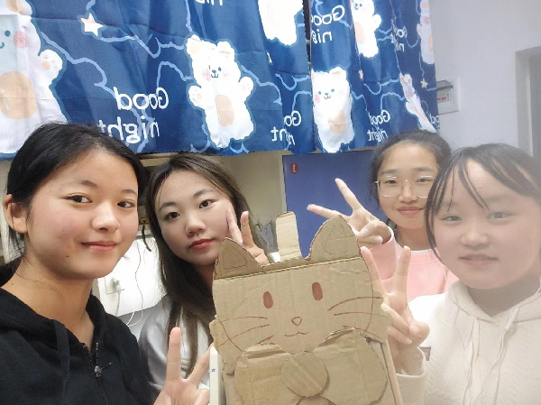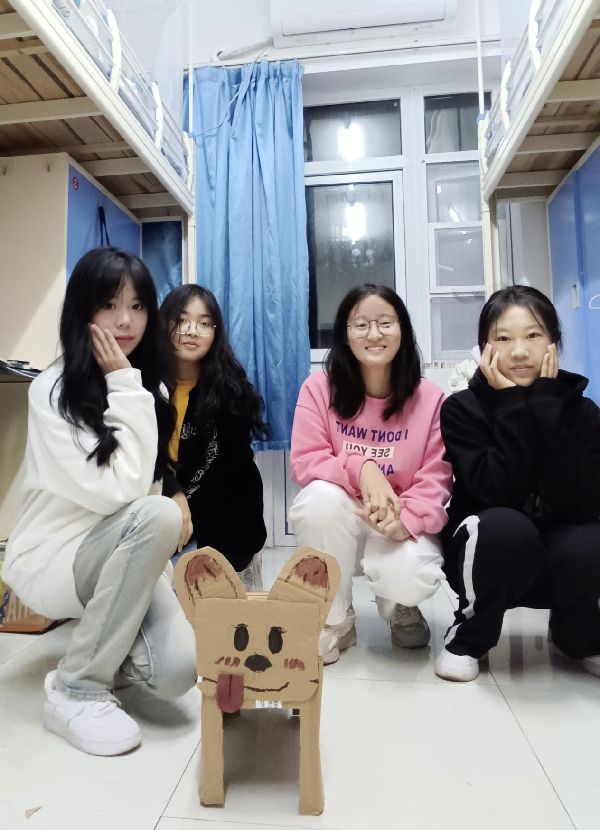 本次活动以寝室为单位开展。活动中,各寝室利用闲置纸箱,制作了“宠物猫”“宠物狗”“宠物猪”等各式寝室“宠物”,并为“宠物”们取名拍照。这些手工创意新奇又可爱,从选材料到画图、裁剪、拼接、制作完成,寝室里的每个同学都参与其中,并乐在其中。