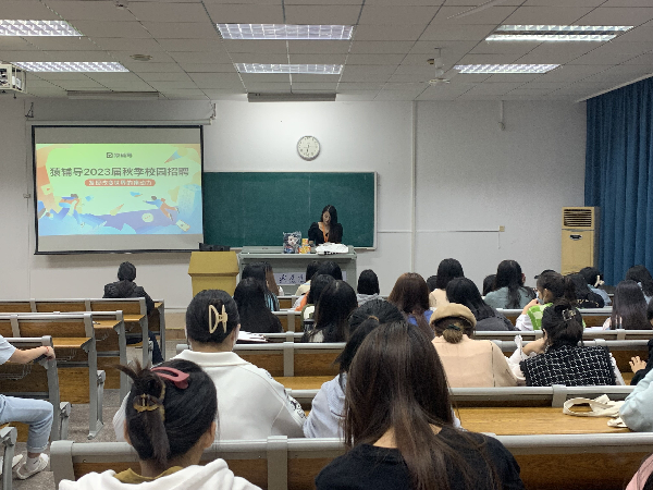 苏珊向同学们介绍了猿辅导的企业文化、优秀产品、职业发展、岗位分布、工作地点、福利待遇等,帮助同学们了解公司整体环境和基本信息。同时,通过现场提问互动,对人才培养、招聘项目等问题进行了解答和说明。