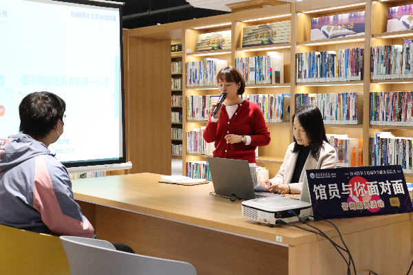 此次讲座分信息素养及素养教育、信息素养教育活动和互动答疑三部分。讲座中,杜少霞对“信息素养是什么”“信息素养为什么重要”“信息素养如何培养”进行了解答,同时指出,图书馆信息素养教育将贯穿学生大学四年,从大一图书馆教育、新生杯信息大赛到大二大三嵌入式教学支撑系统、信息检索大赛以及大四专业信息检索与毕业论文专题讲座,图书馆将通过不同形式、不同学习任务,不断深化学生信息素养培养。她希望同学们都能走进图书馆,充分利用好图书馆文献资源和服务,提升自身信息素养能力,规划好自己的大学学习生活。