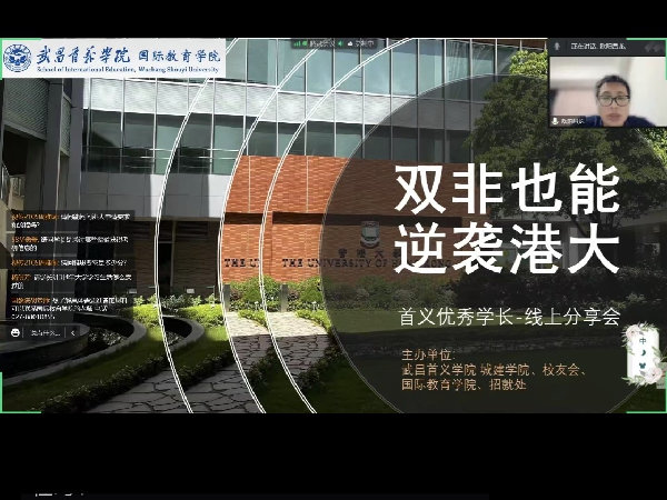 为分享校友自我成长成功经验,助力学子顺利升学读研,12月1日晚,城市建设学院、校友会、国际教育学院和招就处联合举办了“双非也能逆袭港大”首义优秀校友线上分享会。城市建设学院2022届优秀毕业生、香港大学2022级硕士研究生欧阳昌龙作为嘉宾分享经验,城市建设学院党总支书记林飞、辅导员刘腾子及各学院师生140余人参加了分享会。