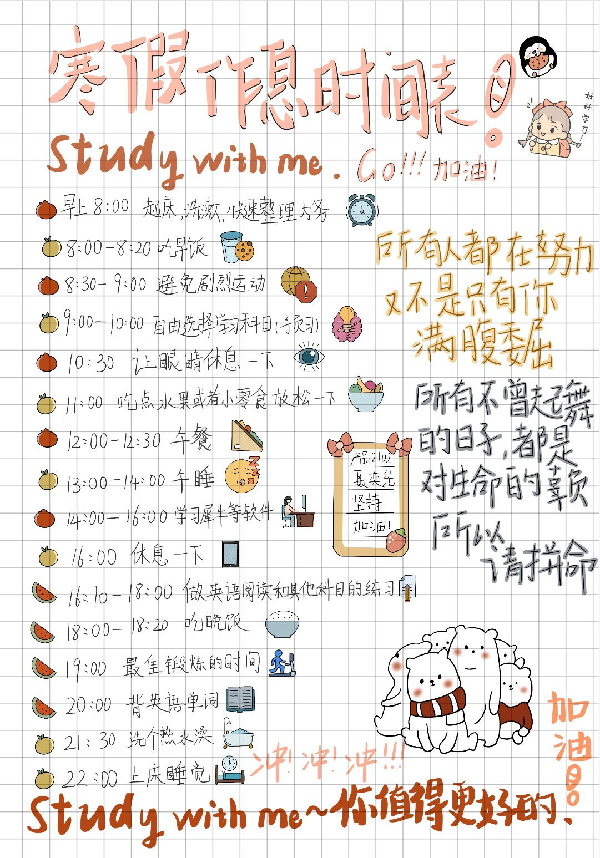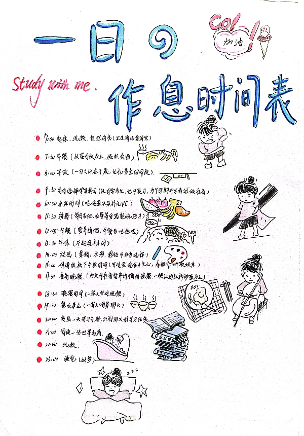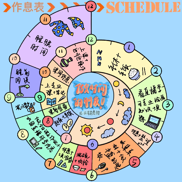 在“学业篇”主题活动中,学院精心策划了“做时间的朋友”每日作息时间表评比大赛,鼓励学生合理安排时间,高效学习、学有所获。活动从时间规划科学、设计精美、实用性强、能充分反应作息情况、具有示范性、内容全面且能促进学习等六个方面进行评分,最终评选出一等奖1名、二等奖4名、三等奖5名。一等奖获得者陶应龙同学参加活动后表示,学业作息表的制作,让自己认真规划了假期时间表,并执行时间表上的每一条计划,未来将继续保持,脚踏实地走好每一步,做时间的主人。二等奖获得者徐凯杰则表示,学业作息表丰富了自己的假期生活,也提高了自己的学习意识,让自己能在假期里保持良好的学习习惯,为开学后更好地学习打下良好基础。