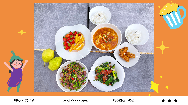 在“劳动篇”主题活动中,学院以“给父母做一餐饭”为主题进行策划,鼓励学生参与家庭事务,积极为家庭生活贡献一份力量。活动实现了良好的家校互动,评选出一、二、三等奖9名。熊兴尧同学参加活动后表示,自己深切体会到了父母的不易,也更加明白自己应自立自强,努力帮父母多减轻一些负担。周子萱同学在活动中精心为父母烹制了一顿美味可口的饭菜,她表示,从选食材到烹调,忙活了几小时,但心里特别满足。刘梅娟同学表示,此次活动拉近了自己与家人之间的距离,让自己更了解了父母的忙碌与辛苦,今后自己一定会更加努力,回报父母。