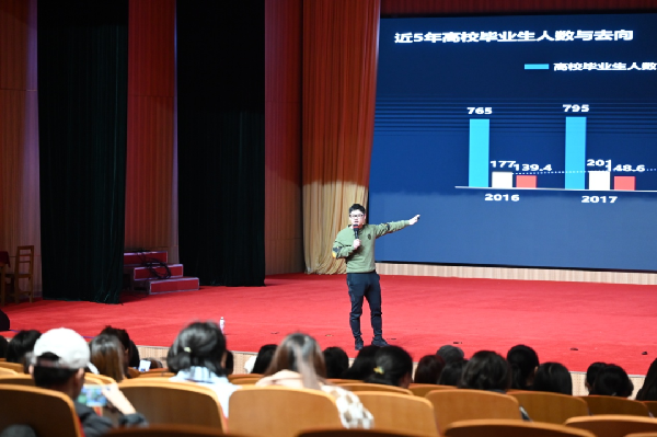 首场讲座主题为“升学与就业规划”,经济管理学院和艺术设计学院全体大一学生参加。