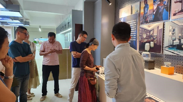 教师们还参观了管家庆教授在艺术与科学研究中心举办的高温釉彩作品展。高温颜色釉彩画代表着未来艺术与科技融合发展的一种方向,既有艺术的“美”、科学的“真”,又有技术的“新”,金属釉料与火的碰撞,涅槃生出一件件珍品。
