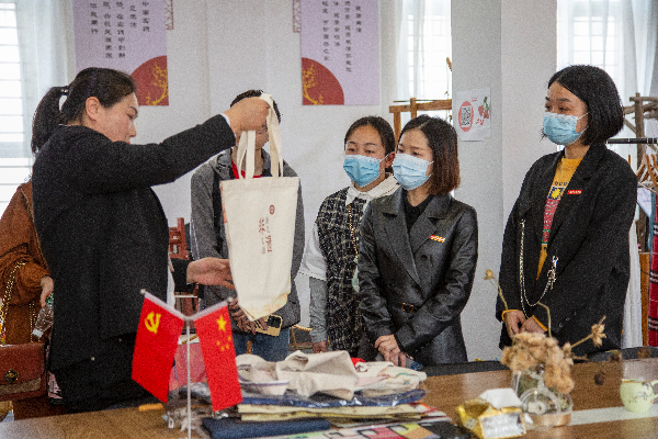 在湖北百布堂手工家纺有限公司,杨琳一行参观了公司办公大楼、家纺展示区、非遗文化展示区和电商直播间,与公司人事行政主管袁晨霞、新媒体部专员胡海驰进行了座谈交流。