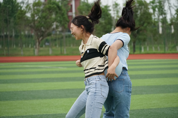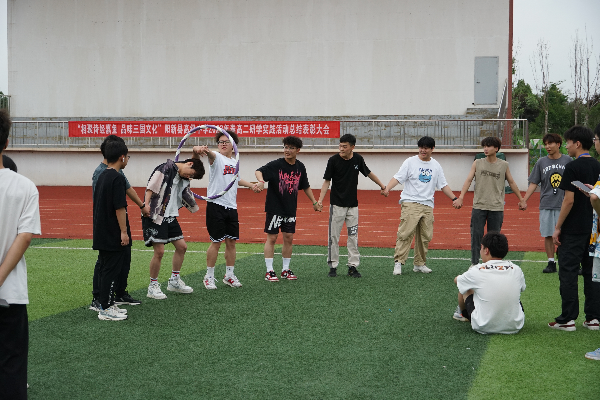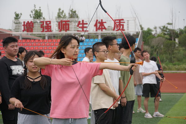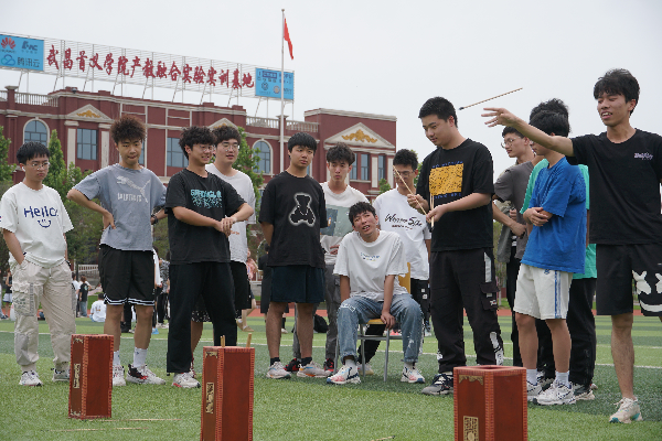 运动会共设四人五足、射箭、盲人打象、投壶、滚铁环、运气球六个项目。运动场上,同学们激情投入、挥洒青春。“四人五足”项目中,同学们两两一组绑脚前行,在呐喊助威声中展现团队默契与合作精神。“射箭”项目中,同学们每人六支箭,集中注意力将箭射出,干脆果断,气势如虹。“盲人打象”项目中,两组同学蒙起双眼,手持塑料棒原地转圈,以滑稽的姿势向对方发起“进攻”,现场笑声加油声不断。“投壶”“滚铁环”“运气球”等项目中,同学们充分发挥团队协作精神,秉持“友谊第一,比赛第二”的宗旨,尽显青春风采,践行体育精神。