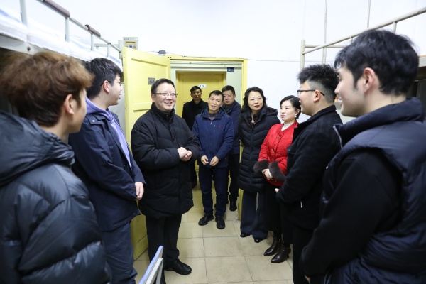 3月1日上午,新学期上班第一天,校领导深入武昌校区和嘉鱼基地教学管理服务一线走访慰问,并检查指导新学期开学准备工作。校领导们还走进学生宿舍,看望慰问了返校的同学们。